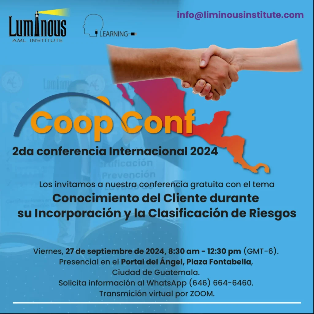 Coop Conf 2da conferencia internacional 2024 Los invitamos a nuestra conferencia gratuita con el tema Conocimiento del cliente durante su incorporación y la clasificación de riesgos.